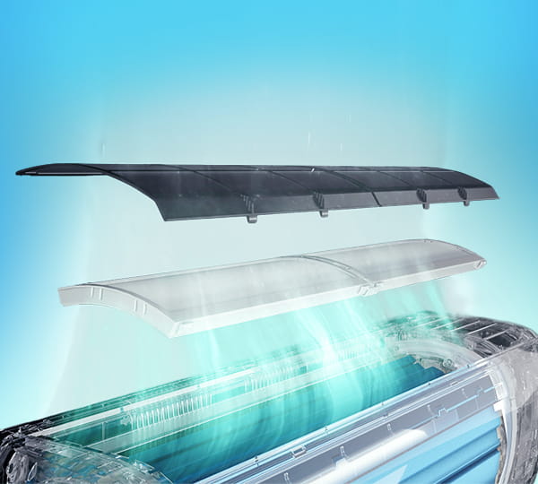 Antybakteryjna powłoka Self Hygiene z nanocząsteczkami srebra zabezpiecza elementy kanału powietrznego przed rozwojem bakterii i pleśni. Dzięki temu powietrze wydmuchiwane przez klimatyzator pozostaje czyste, świeże i bezpieczne dla zdrowia domowników.